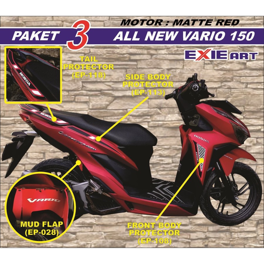 Dapatkan Aksesoris Vario 150 Berkualitas Dari Berbagai Pelapak Se-Indonesia. Paket ini memiliki 2 opsi dimana satu paket memiliki 7 item dan paket lainnya memiliki 4 item. Jual beli online aman dan nyaman hanya di Tokopedia.